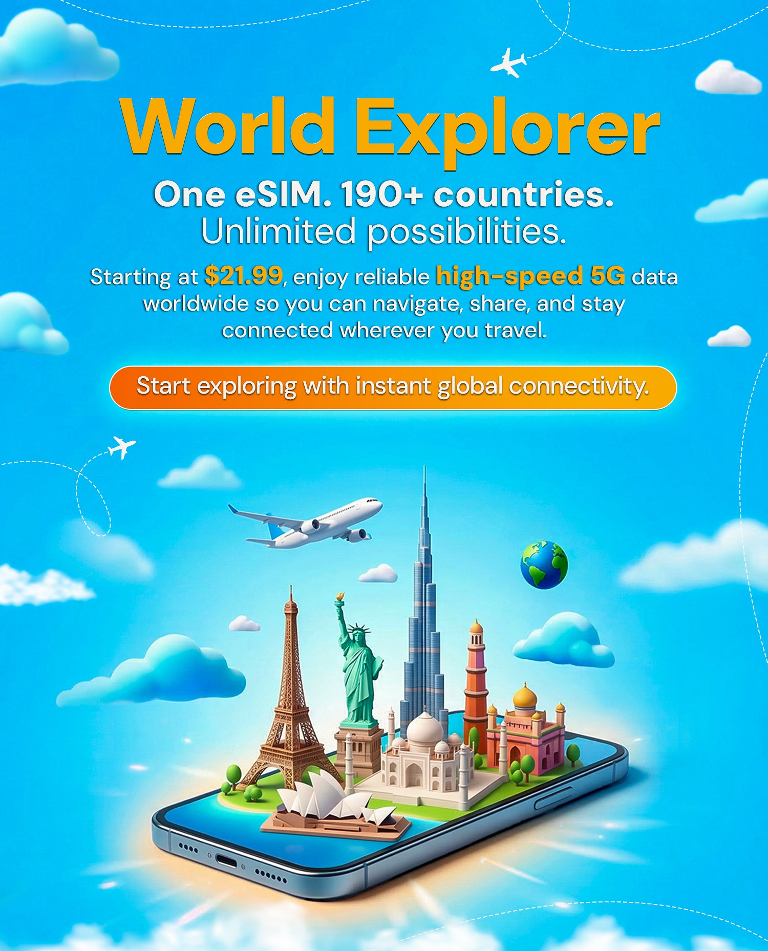 Stay connected wherever you travel with ESIMtrav eSIM. Skip costly roaming charges and enjoy seamless internet on every trip.